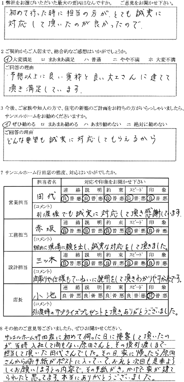 お客様の声|埼玉県の土地・不動産・オシャレな注文住宅