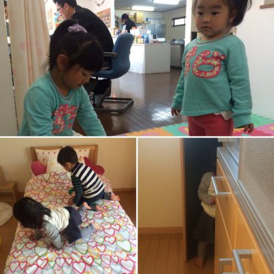 かくれんぼからのベッドでジャンプYくん&Aちゃん