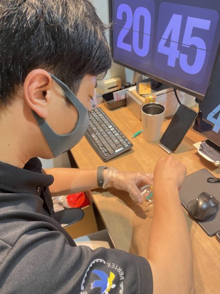 今日は杉本店長と一緒に風鈴に絵をかきました~