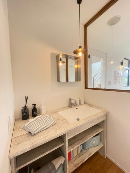 私のお気に入りポイントは玄関から入ってすぐ手を洗える、おしゃれな洗面台です