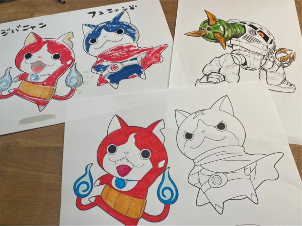 ジバニャンが大好きなお子様と一緒にぬり絵をしました