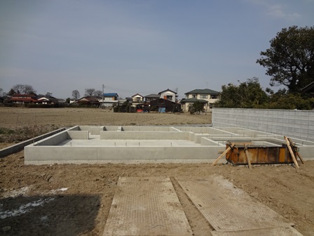 こんにちは。工事の小林です。加須市のI様邸の工事の状況です。基礎工事がきょうで、完了しました。来週は、外部の給排水の工事を行う予定です。