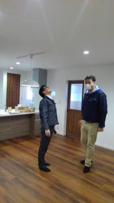 竣工検査中の今井さんと賢次さんです