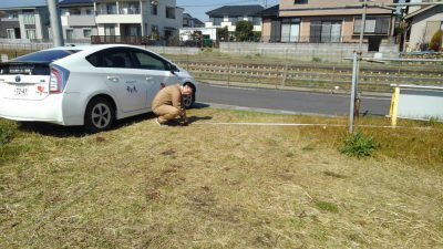 お城の配置がイメージ湧きやすいように、地縄を張っています