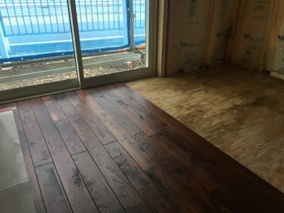 床のタイルが、木の木目を生かしていてとてもオシャレですね完成が本当に楽しみです