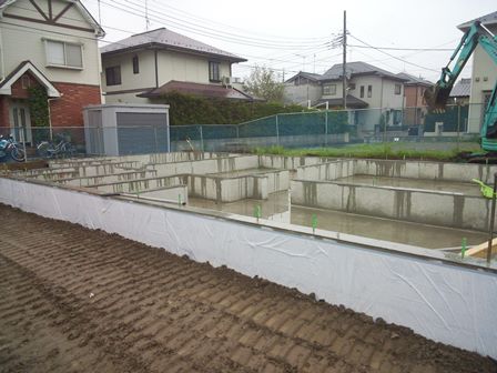 こんにちは。工事の小林です。今日は雨になってしまいましたが、基礎工事も完了しました。明日から、大工さんが土台敷きをおこないます。明日からは晴れるようなので、よかったです。