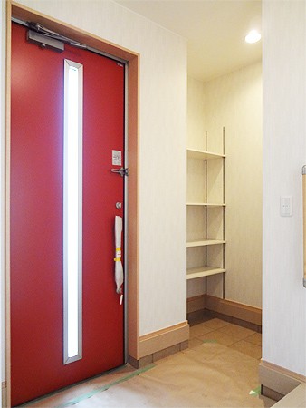 対面キッチンです!奥は階段下を有効活用して収納スペースにしました!