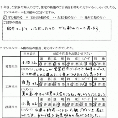 お客様の声|埼玉県の土地・不動産・オシャレな注文住宅