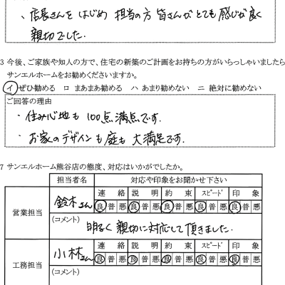 お客様の声|埼玉県の土地・不動産・オシャレな注文住宅