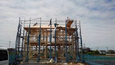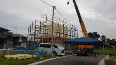 今月は梅雨に入りなかなか工程が定まらないなか、お施主様と職人さんと私の日頃の行いが良かったからでしょうか、6/11、6/25、6/27、6/29と4件の上棟が行えました。
