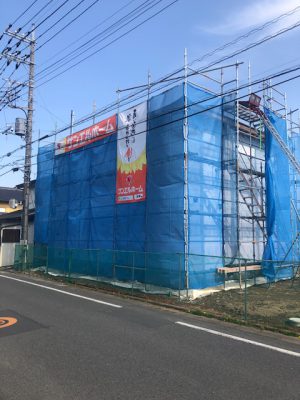 天気が良いと熱く感じてきましたあせあせ (飛び散る汗)あせあせ (飛び散る汗)  天気が良いと足場のシートも良く見えます目