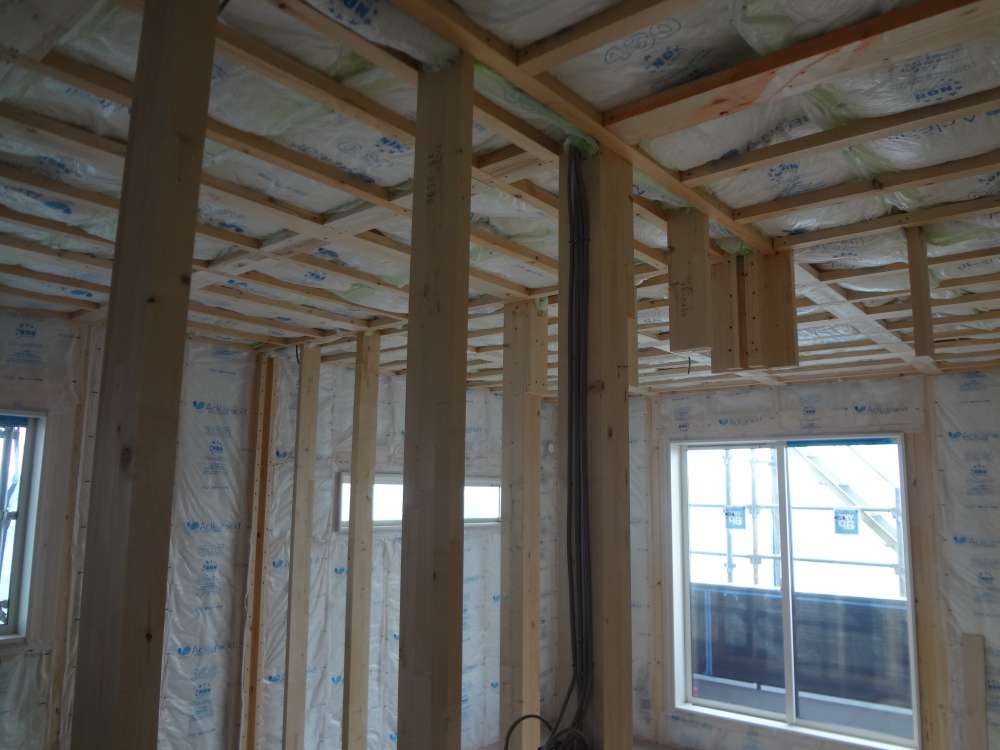 こんには。工事の小林です。鴻巣市I様邸の進捗状況です。断熱材の施工が完了です。この後は、石膏ボード貼り