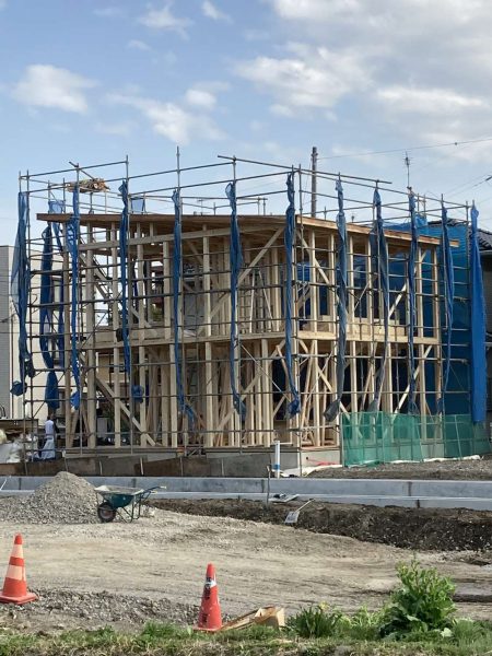 こんにちは!熊谷市S様邸今日上棟しました。天気も良かったので工事も順調に進んで二時過ぎにかんりょうしました。