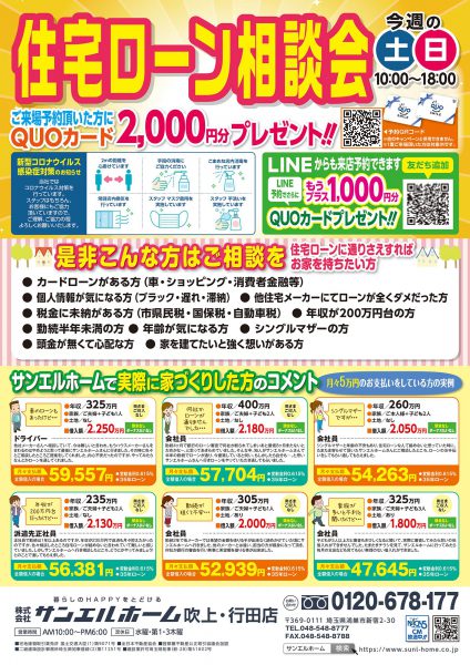 「モデルハウス見学会」「住宅ローン相談会」を開催致します