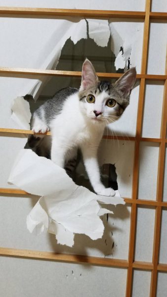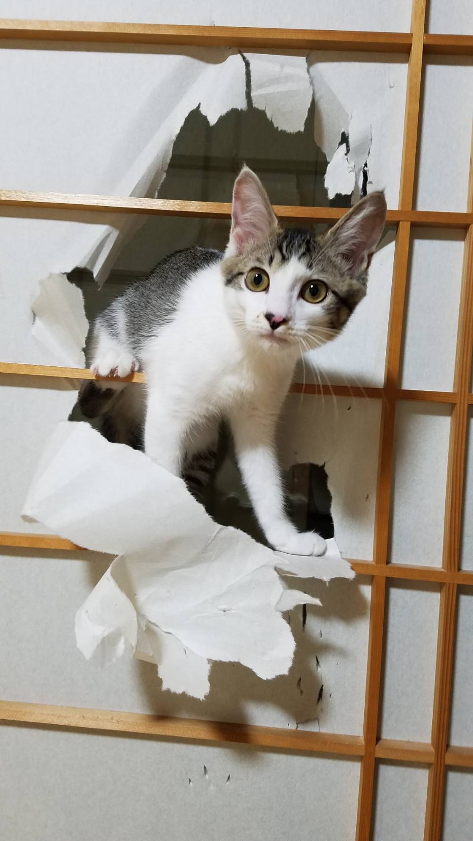 そんな中我が家の野良猫(生後3か月ぐらい)は網戸を破っては怒られ、破っては怒られ、収拾がつかなくなりました、やんちゃで困りますが、顔がかわいいので許しています