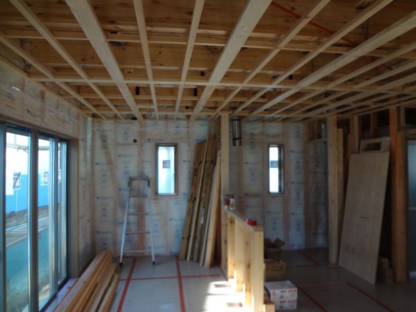 こんにちは!工事小林です。熊谷市のお様邸の進捗状況です。断熱材とフローリング貼りの施工が完了しました。