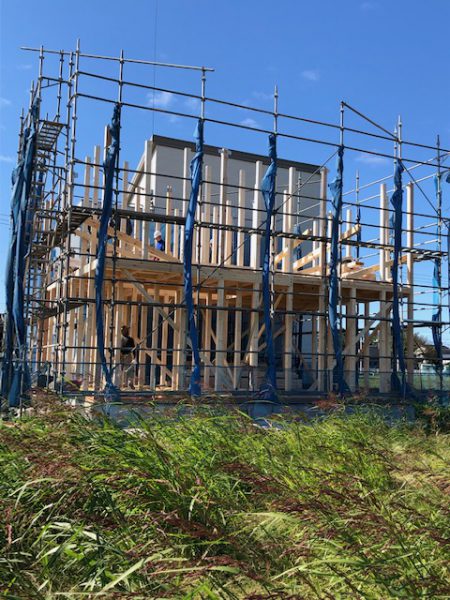 今朝は天候が心配でしたが天気も良くなり無事に上棟となりました。