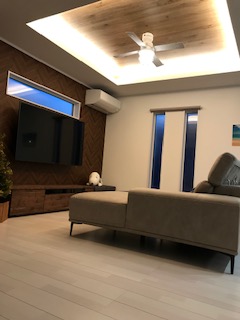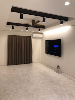 間接照明に壁掛けTV・・・最近のはやりですね