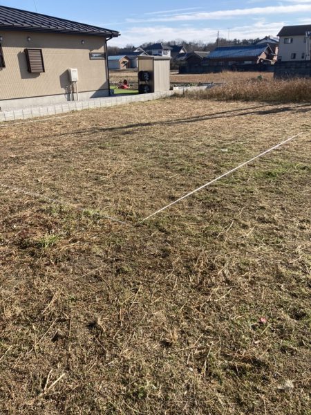 地鎮祭時、お施主様と建物の配置、大きさなどが確認できるよう地縄を張ります