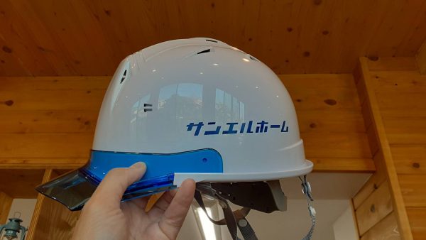 新しいヘルメットをかぶって安全第一でしっかり現場チェックを行います!
