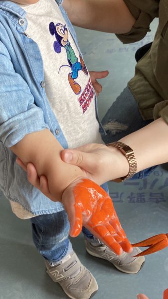 お施主様にも暑い中、現地に足を運んで頂き、手形を記念に楽しんで頂きましたふらふら