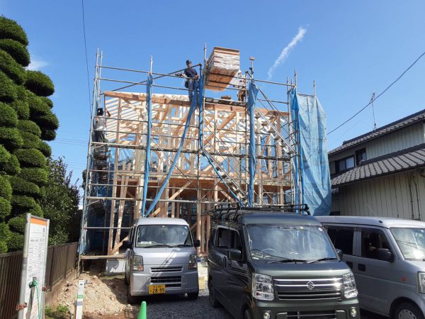 先日、東松山市K様邸、無事いいお天気の中上棟いたしました