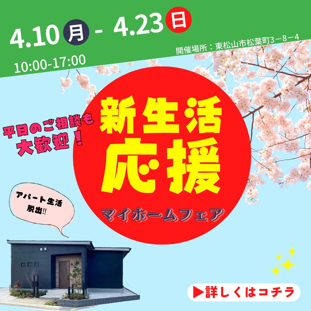 4月23日(日)まで「新生活応援!マイホームフェア」を開催中です!