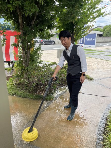 お店の外構に連日の雨でコケが生えてしまっていたので