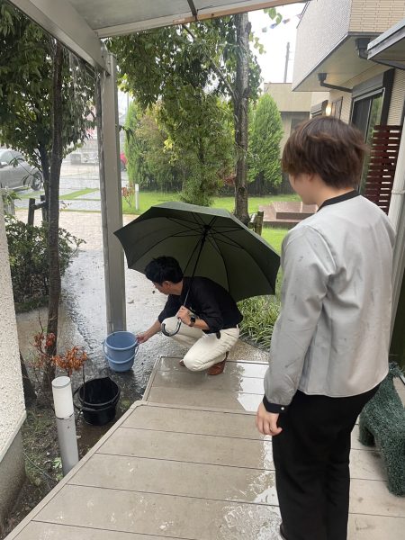 杉本店長と設計の石川さんがバケツを持ってきて、