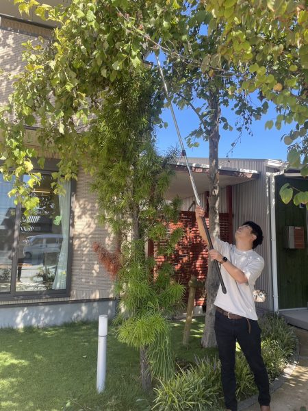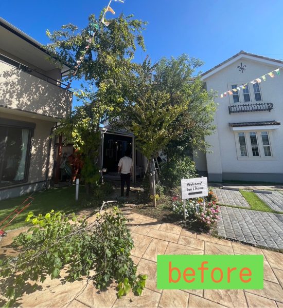 杉本店長・石川さんと私の3人で伸びてしまった枝を切りましたダッシュ (走り出すさま)