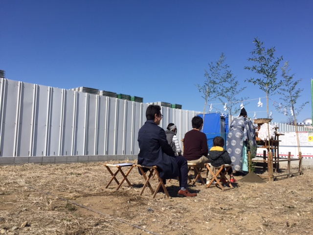S様の地鎮祭の様子です。澄み切った青空が綺麗で
