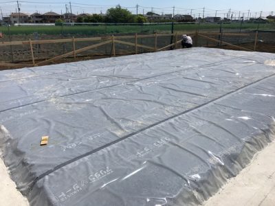 通常の住宅会社さんは湿気を止めるためのビニールシートを施工して