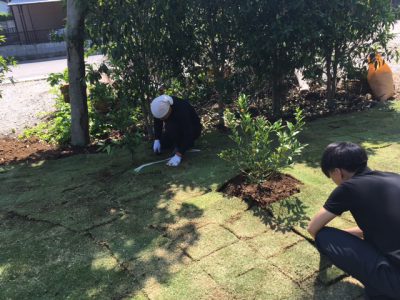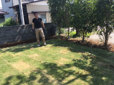 暑い中、みんなで頑張って半分以上の芝を張る事が出来