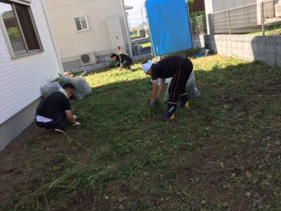 今日は加須店みんなで北小浜モデルハウスの草むしりをしました。