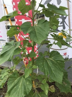 加須店の花壇ではたくさんのヒマワリが成長しておりますが・・・