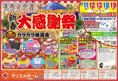 ご来場いただいた皆様にはお年玉イベント『ガラガラ抽選会』開催中です。