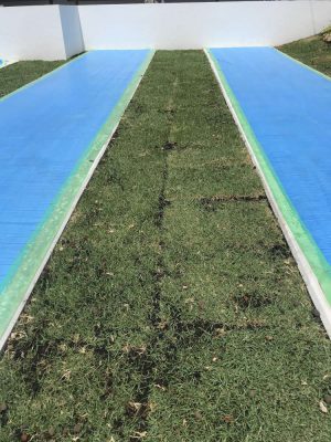 一時移転中のサンエルホーム加須店ですが、先日オープンしましたNEWモデルハウスの芝が連日の夕立で青々と根付いております。