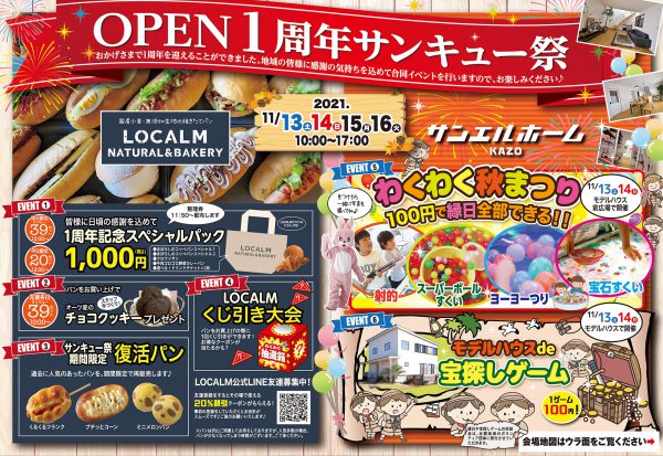 11月13(Sat).14(Sun).15(Mon).16(Tue) LOCALM×サンエルホーム加須店
