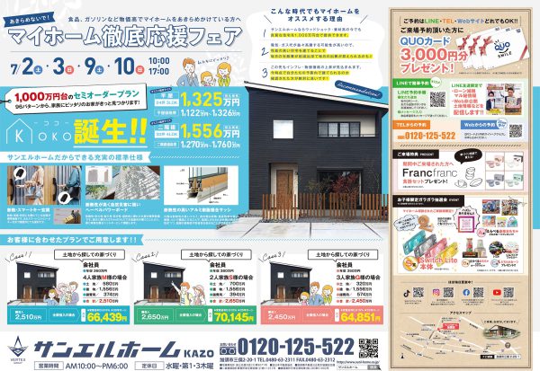 7月2日㈯・3日㈰・9日㈯・10日㈰と加須店ではマイホーム応援フェアを開催します!!