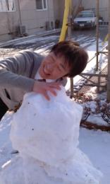 朝から晋太郎は元気に雪だるまを作ってくれました[e:319.gif”>