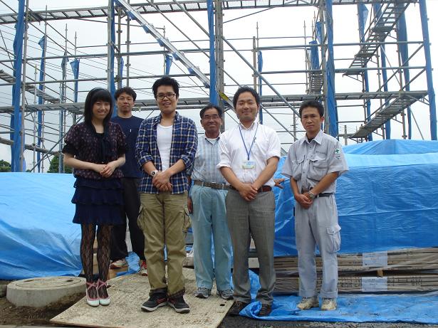 お昼前くらいにはk様も来て頂き大工さん紹介と近隣挨拶一緒に行き記念に写真を撮りました