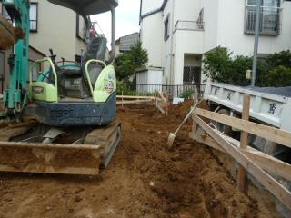 この枠から高さを計算し土を掘ったり、入れたりしていきます