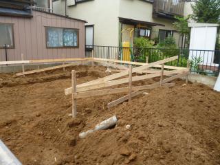 基礎業者さんが遣り方と呼ばれる建物を設計された
