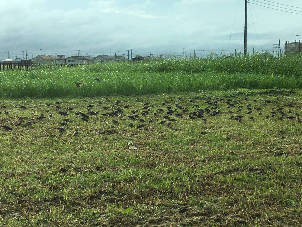 草刈りの後の土地は鳥たちにとってはごちそうの聖地となるようです(;^_^A