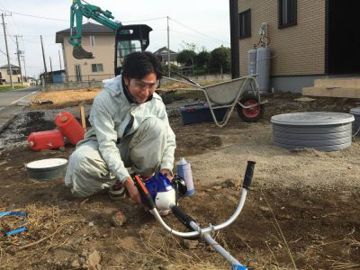 草が伸び放題伸びていたため、わが家のエース!中里君がおニューの草刈り機で