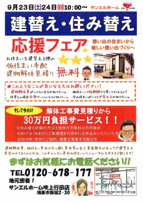 いよいよ今週末、23・25日に「建て替え・住み替え応援フェア」開催致します