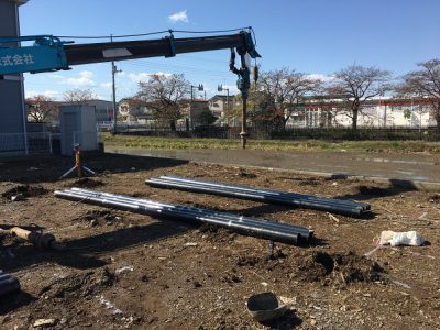 先日、妻沼の土地に行った際、初めて地盤補強工事をしている所を見ました
