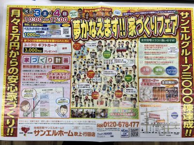 と、言う訳で明日から2日間吹上行田店では、「夢かなえます家づくりフェア」を開催します