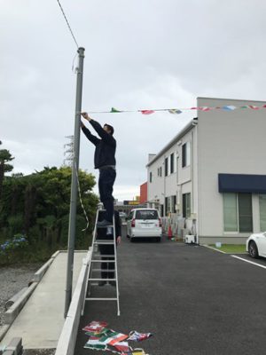 外の万国旗、新しいものに