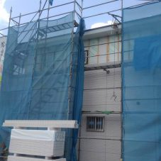 丁度 外壁を貼っている作業で、職人さんが暑い中でも作業して頂いておりました